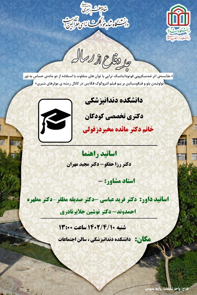 جلسه دفاع از پایان نامه خانم دکتر مائده مخبر دزفولی